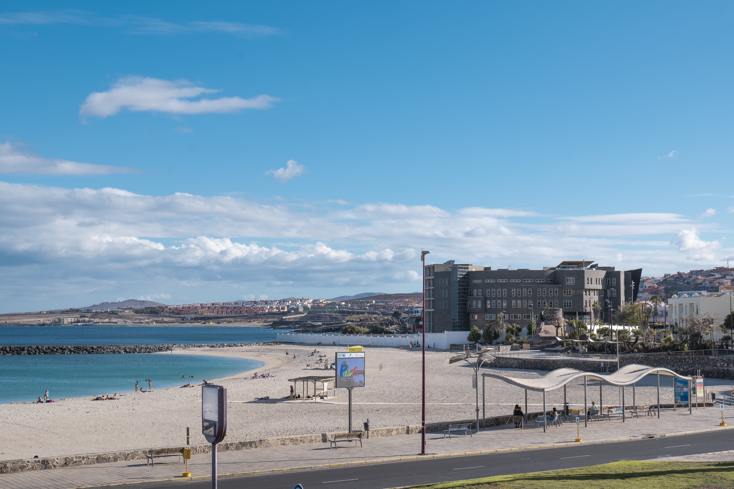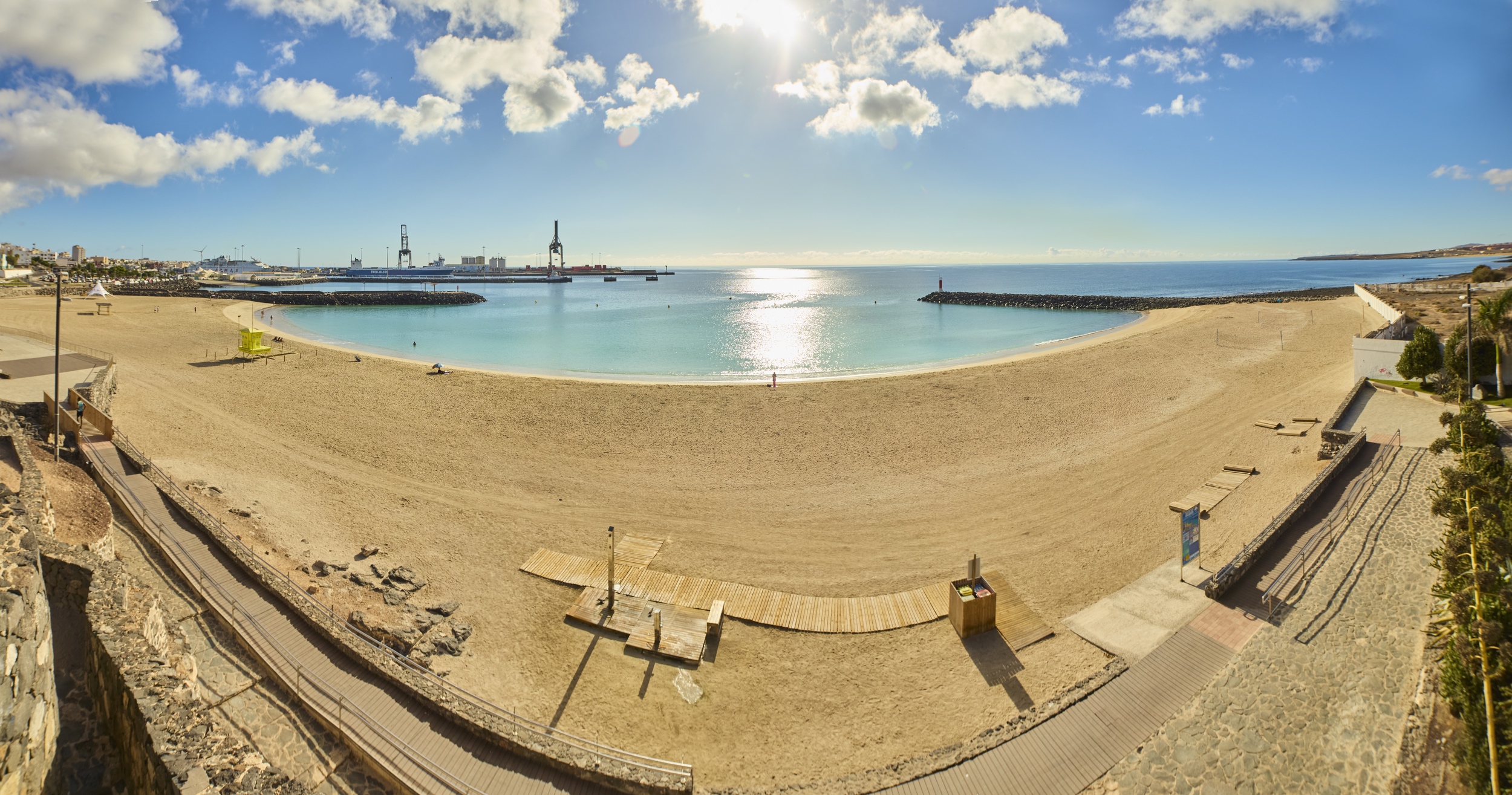 Dieser städtische Strand zeichnet sich durch seinen feinen goldenen Sand und das im Allgemeinen ruhige Wasser aus, das durch die Bucht von Puerto del Rosario selbst geschützt wird. Diese Bedingungen machen ihn besonders geeignet für entspanntes Baden, Schwimmen und Familienvergnügen, wobei die Anwesenheit von Kindern, älteren Menschen und Nutzern, die eine sichere und nahe Umgebung suchen, üblich ist.