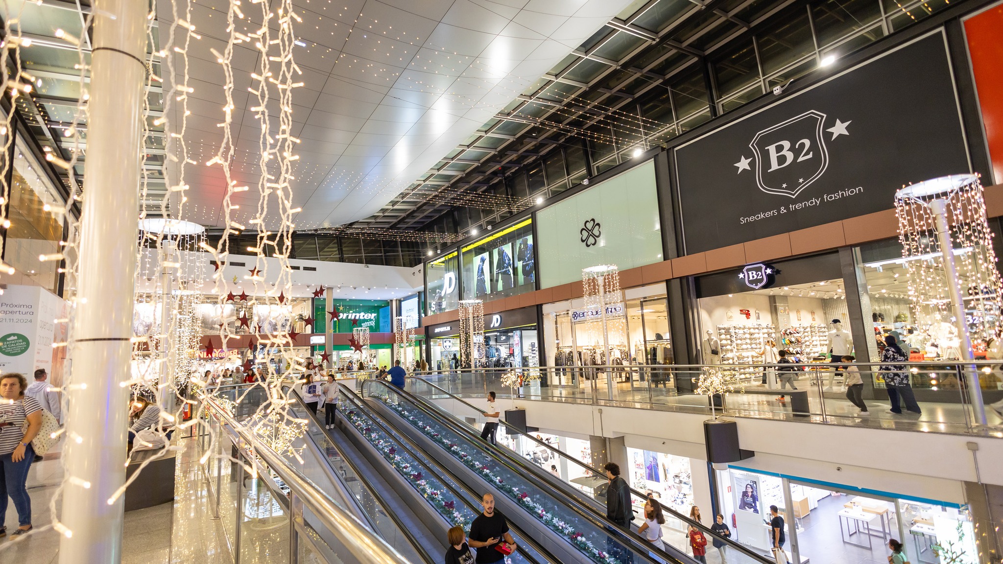 El complejo destaca por su arquitectura vanguardista, concebida para aprovechar al máximo la luz natural, que baña los espacios interiores y genera un ambiente cómodo y agradable para el paseo y las compras. Dispone de más de 30.000 metros cuadrados de superficie comercial, distribuidos en cuatro plantas, y cuenta con un aparcamiento con capacidad para más de 1.000 vehículos, lo que facilita una experiencia accesible y cómoda.